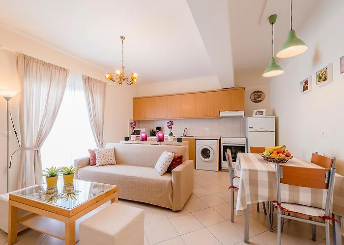 Tijdens een verblijf in Archangelos Houses appartement van 80 m^2 kunnen gasten zich ontspannen op een terras op ongeveer 7 km van Artistic Village Contemporary Art. Om de omgeving te verkennen biedt het appartement auto's en fietsen te huur.